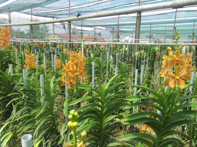 Một số giống lan như Vanda, Renanthera, Mokara,… với đặc trưng phát triển cao lớn, lá hình trụ, khó có thể trồng trong chậu mà phải trồng lan thành luống